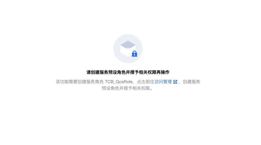 输入网址:console.cloud.tencent.com/tcb/env/ind… ,如果没有授权会弹出以下画面。