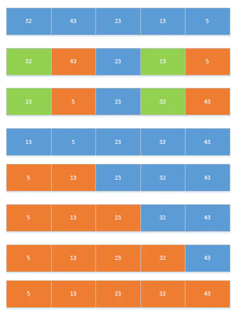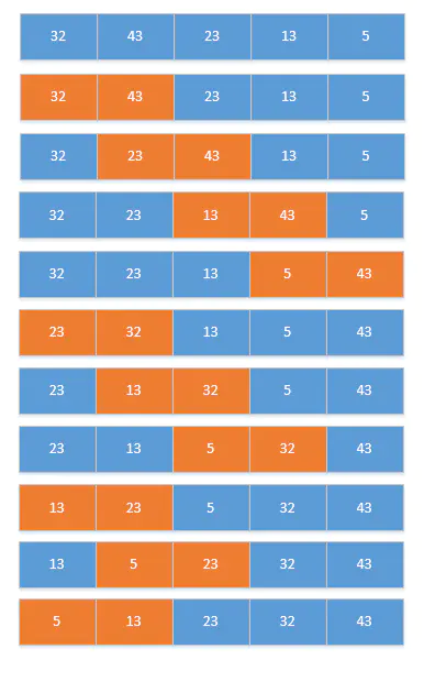 (如果每次比较都交换,那么就是交换排序;如果每次比较完一个循环再交换,就是简单选择排序。)