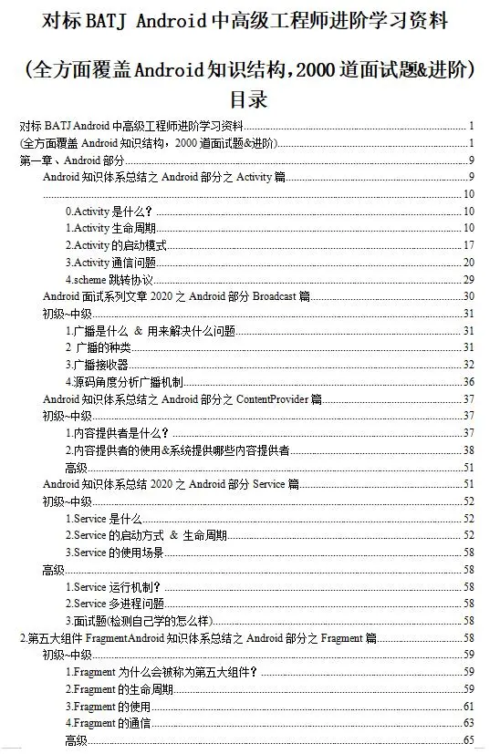 全方面覆盖Android知识结构,2000道面试题&进阶