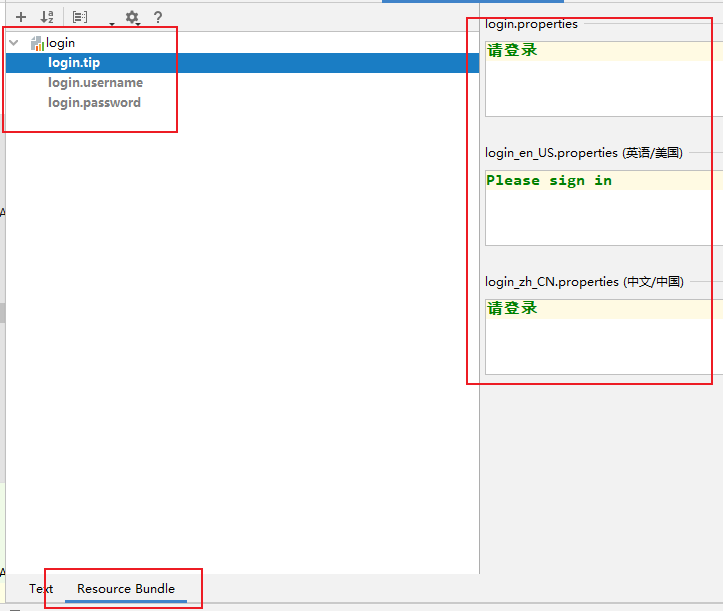 国际化视图。会将我们刚才写的两个配置文件加到Resource Bundle 'login'目录下: