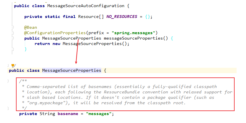 相应的自动配置类是:MessageSourceAutoConfiguration。源码中正好有相关类的