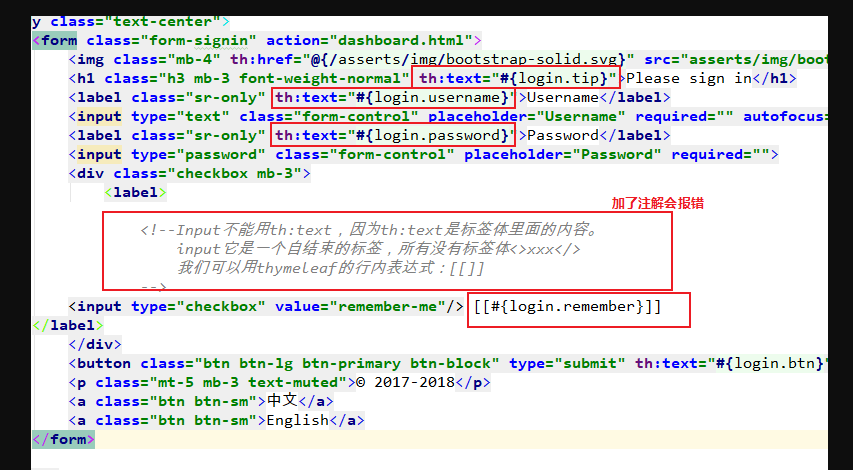 所以我们用Thymleaf语法中的th表达式语法将webjars引入到静态资源中: