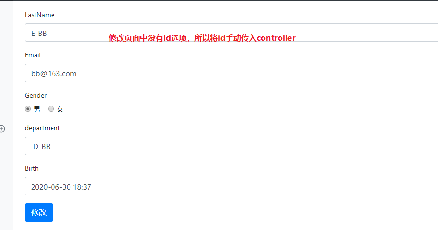 因为<form/>在<tr th:each="emp:${emps}"/>中,所以每遍历一个就会生成一个表单。