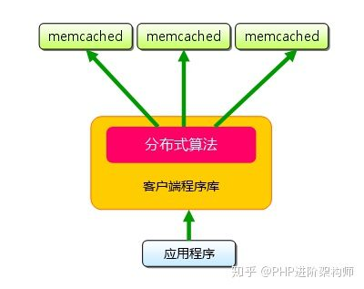 Memcached的分布式不是在服务器端实现的,而是在客户端应用中实现的,即通过内置算法制定目标数据的节点。