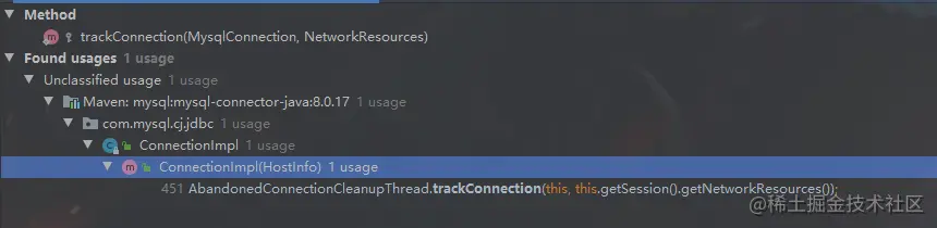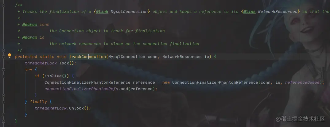 果然是PhantomReference,里面存放的是创建的MySQL连接,看一下是在哪里被放进来的: