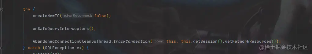 可以看到,每次创建一个新的数据库连接时,都会将创建的连接包装成PhantomReference后放入connectionFinalizerPhantomRefs中,然后这个清理线程会在一个无限循环中,获取referenceQueue中的连接并关闭