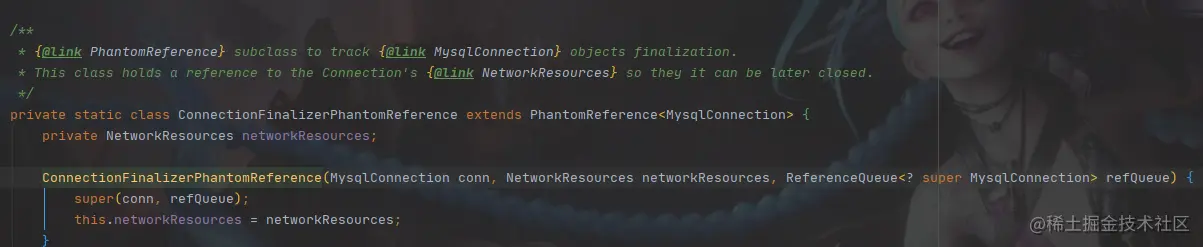 只有在 connection对象 没有其它的引用,仅存在phantom reference时,才能够被GC,并且放入referenceQueue中