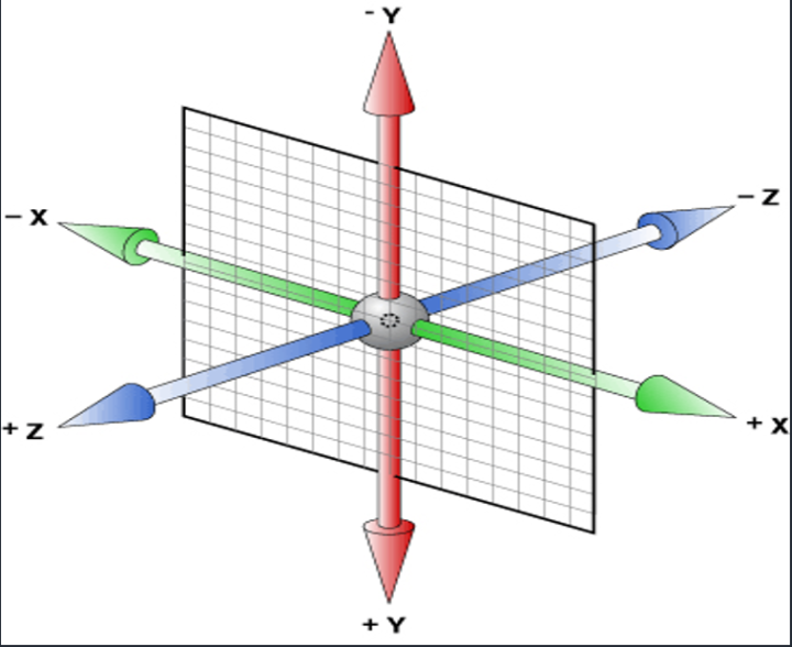 Z轴:靠近屏幕的方向是正向,远离屏幕的方向是反向
