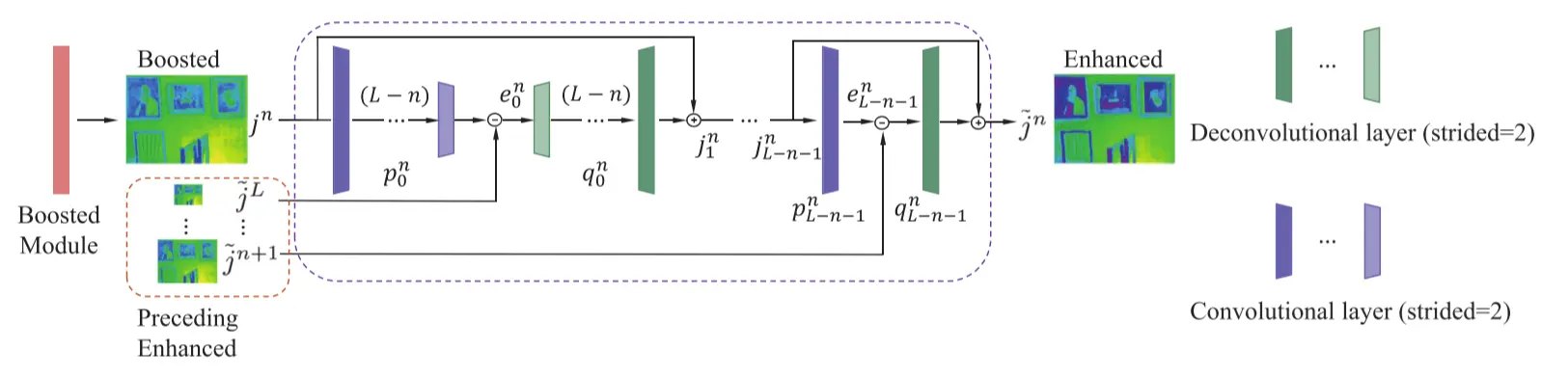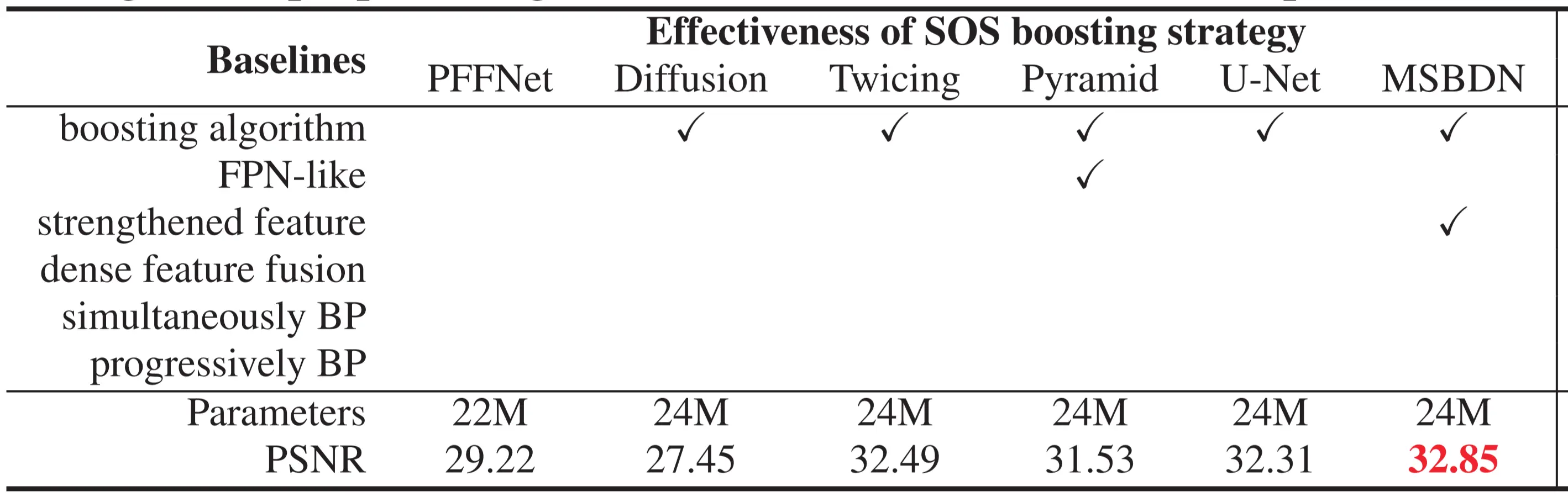 文章提出了一个基于U-net架构的具有密集特征融合的多尺度Boosting去雾网络,它在解码器中加入了基于Boosting的策略,基于反投影反馈方案设计了一个密集特征融合模块。