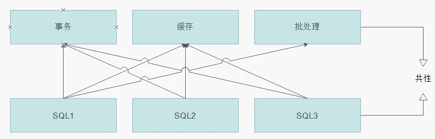 3 缓存:执行器的功能,除了增删改查以外,有缓存和事务,还有多个SQL的重用,这些都是多个SQL执行过程中有共性的地方。(两个SQL,参数和SQL语句一样,那么就可以命中缓存,那么说缓存就是这两个SQL语句的共性。)