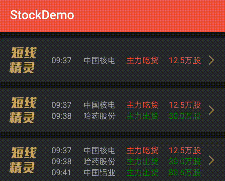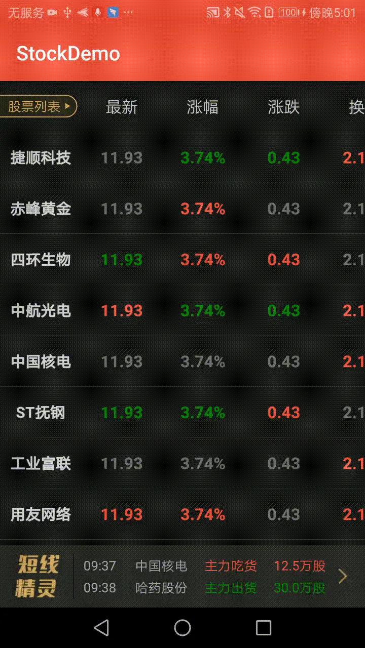 本文是对上篇文章的一个补充,股票 APP 列表底部有一个实时更新交易的跑马灯效果,纵观市面上很多产品都应用到这个效果,决定自己动手实现一下。