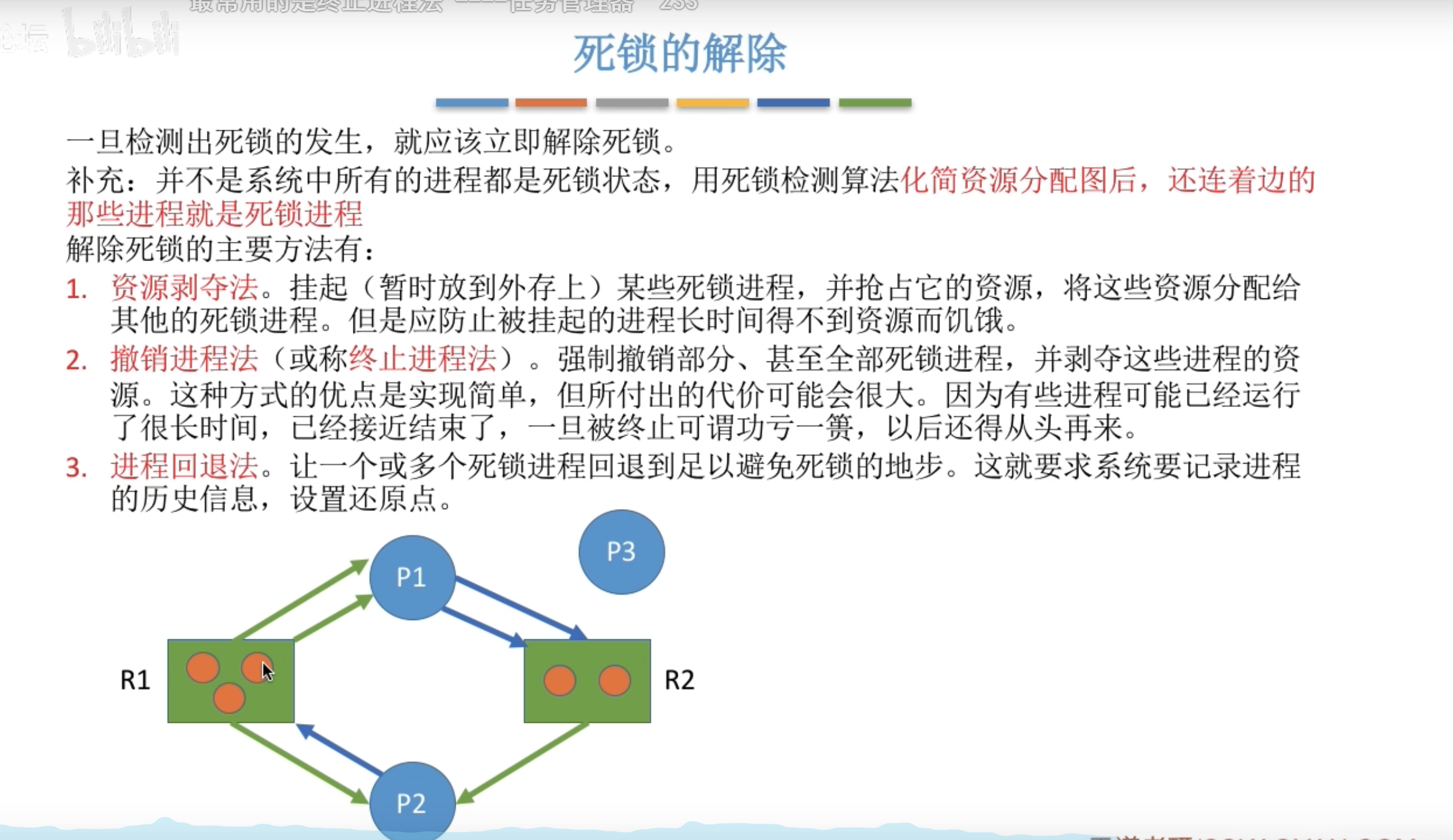 - 顺序资源分配法:给系统中的资源分配编号,每个进程必须按编号递增的顺序请求资源,大编号资源不可以逆向回来申请小编号的资源