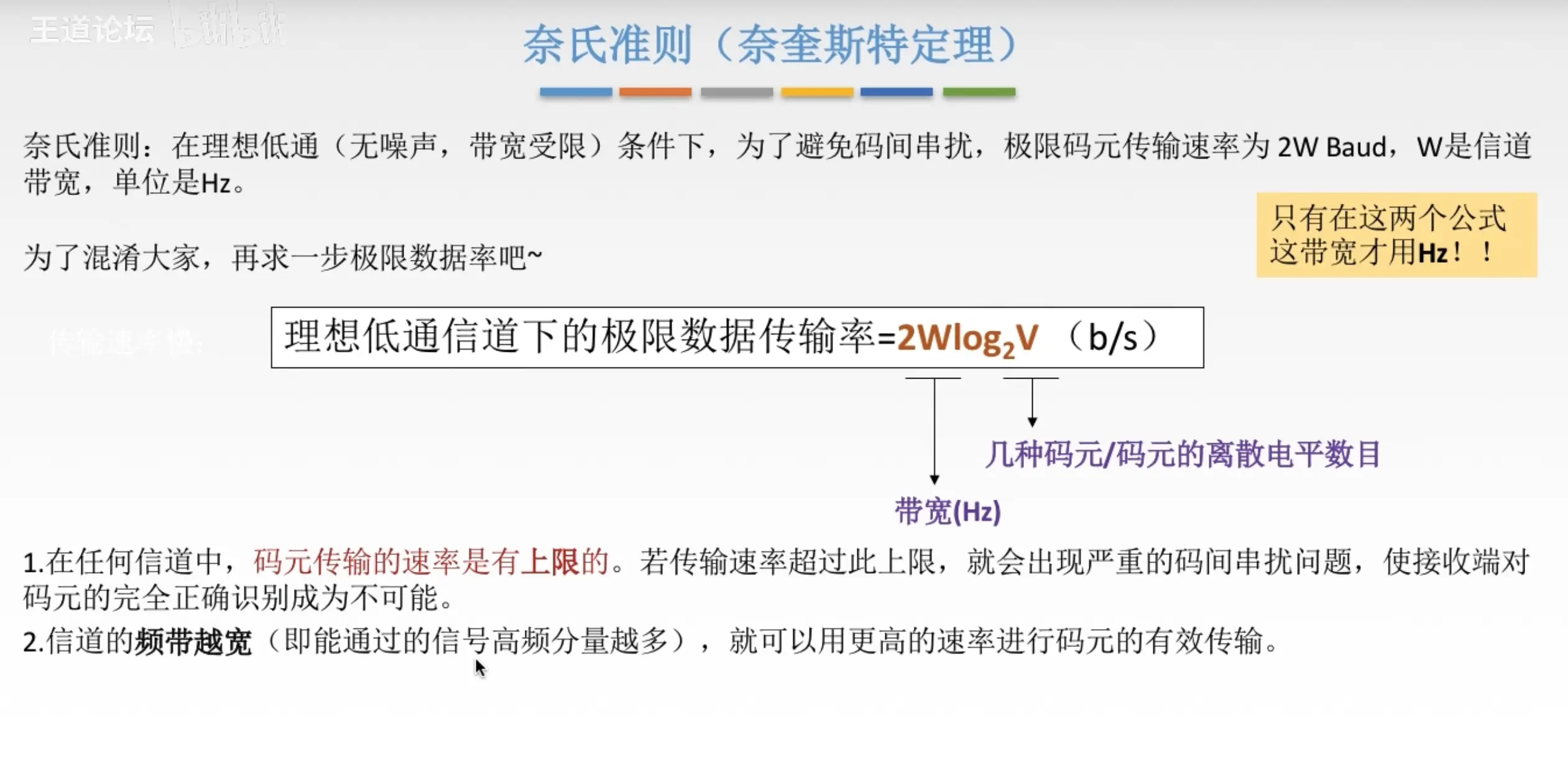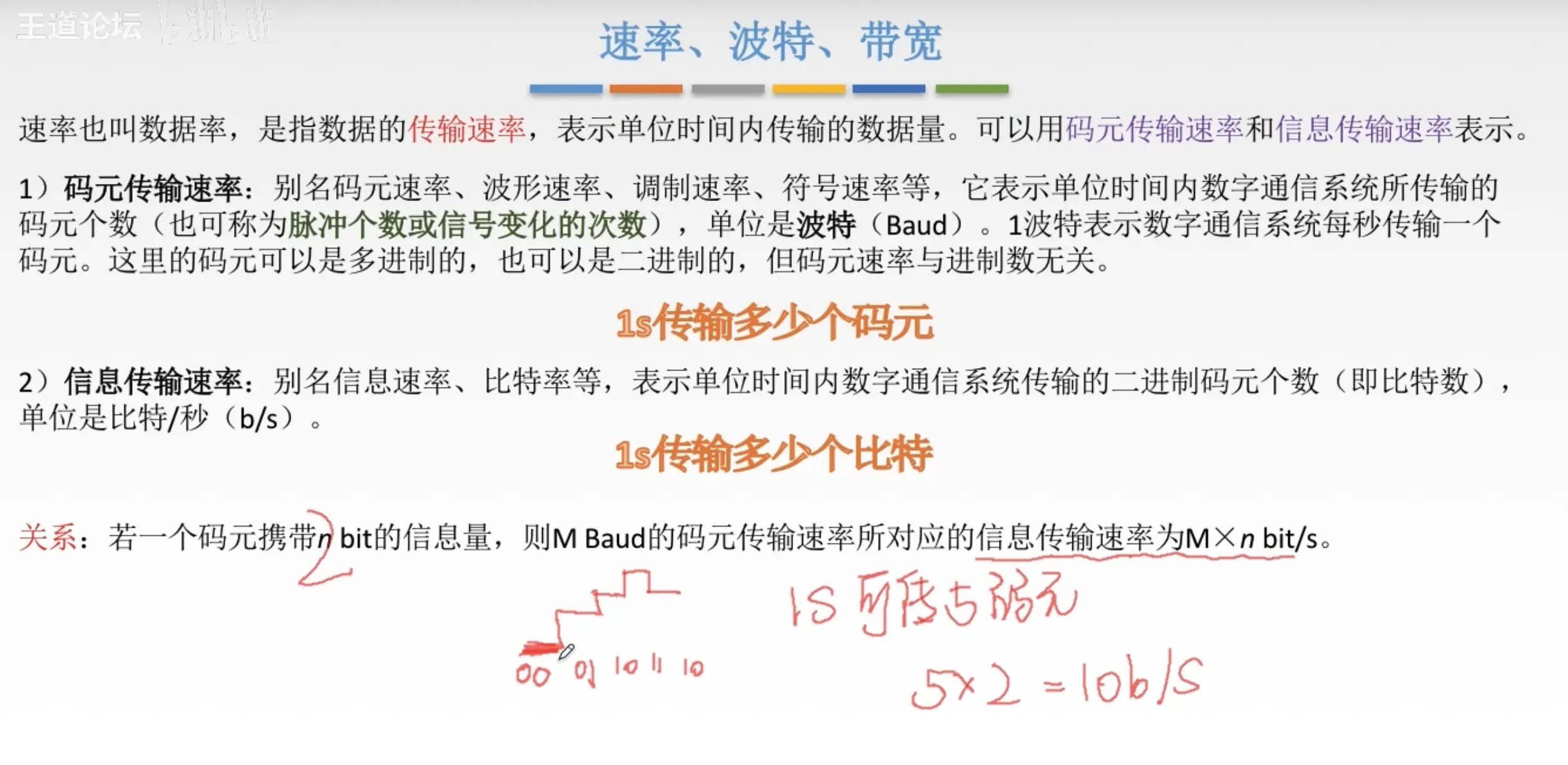 带宽:单位时间内从网络某一点到另一点所能通过的最高数据率,常用来表示网络的通信线路所能传输数据的能力