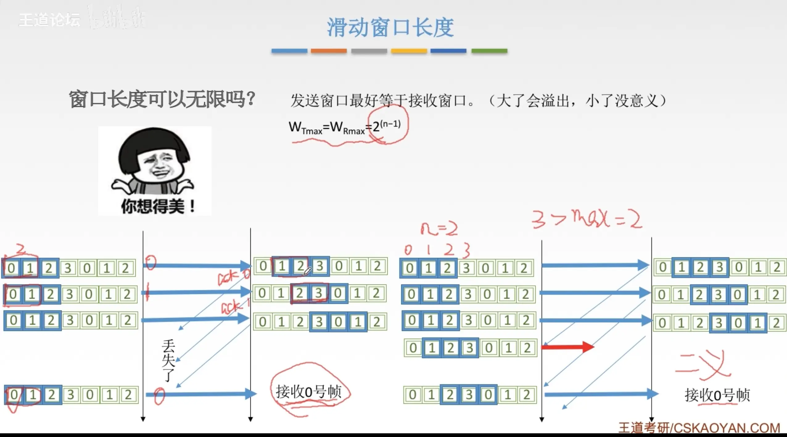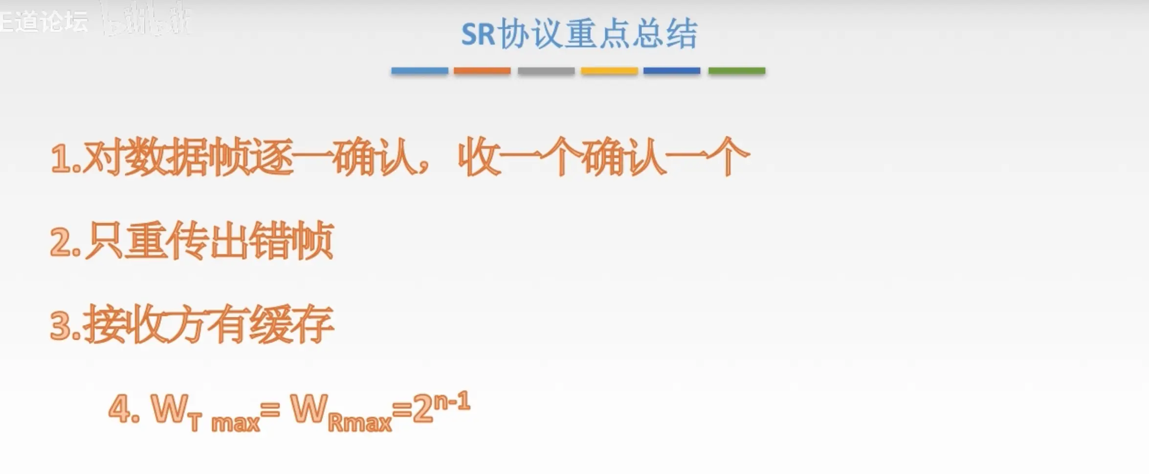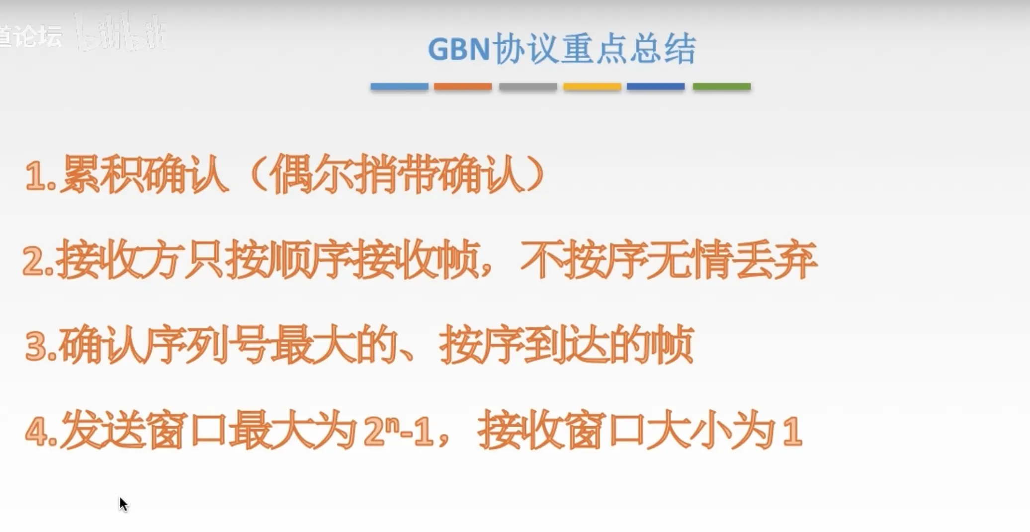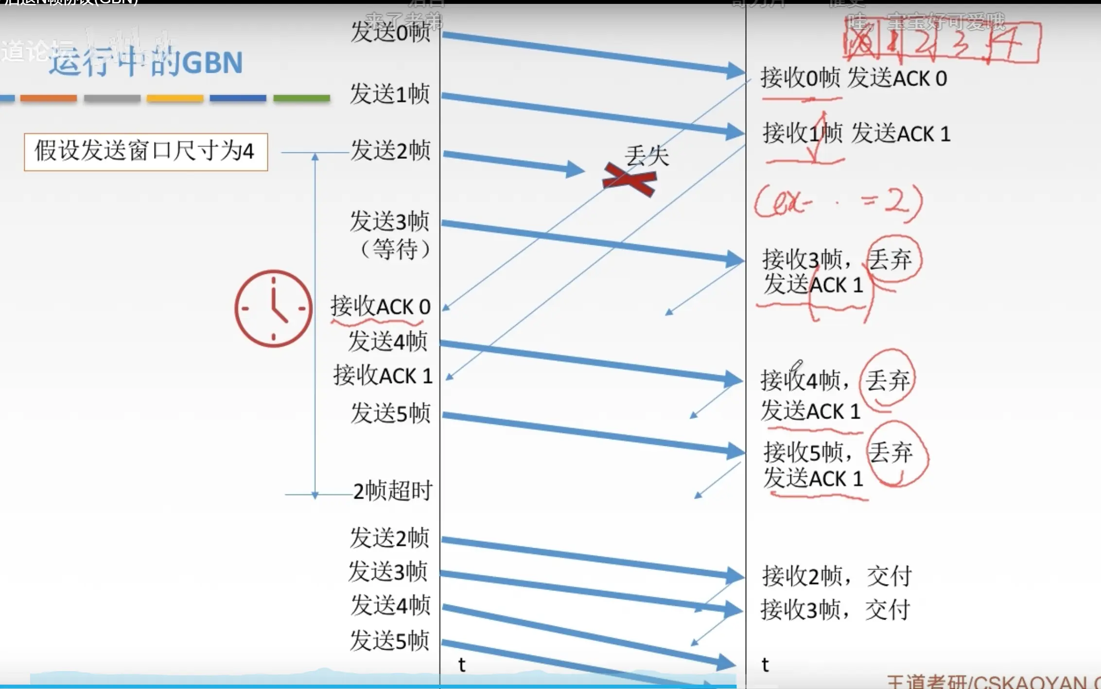 - 收到的帧是按序的,说明真个帧之前的帧全部收到了