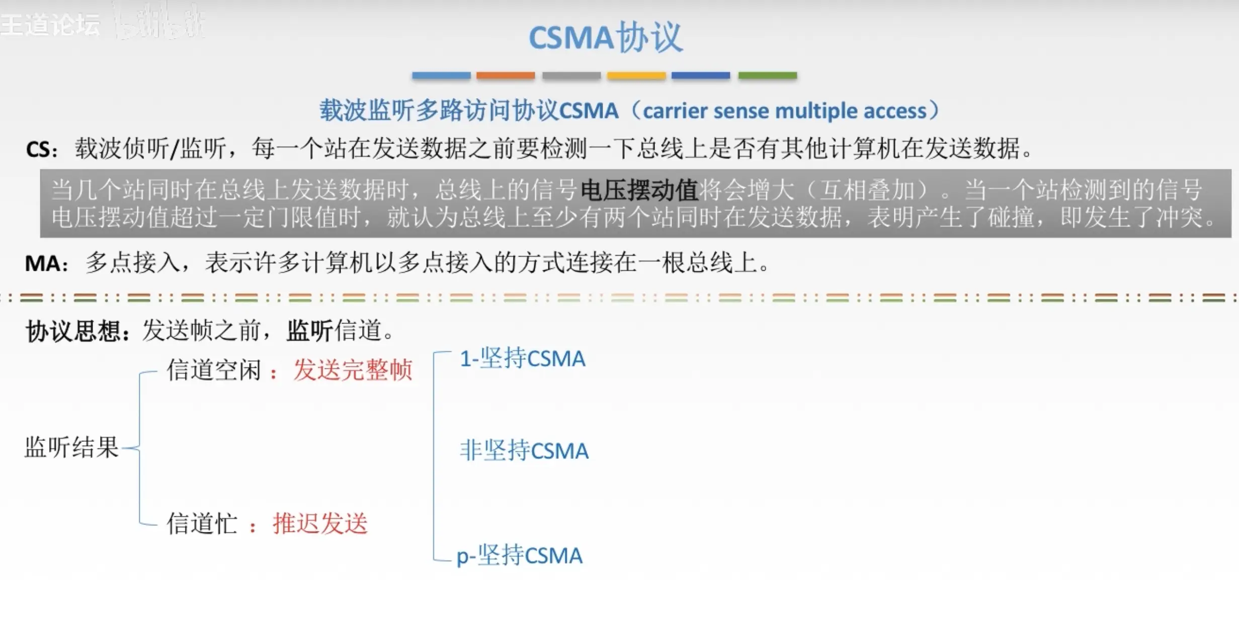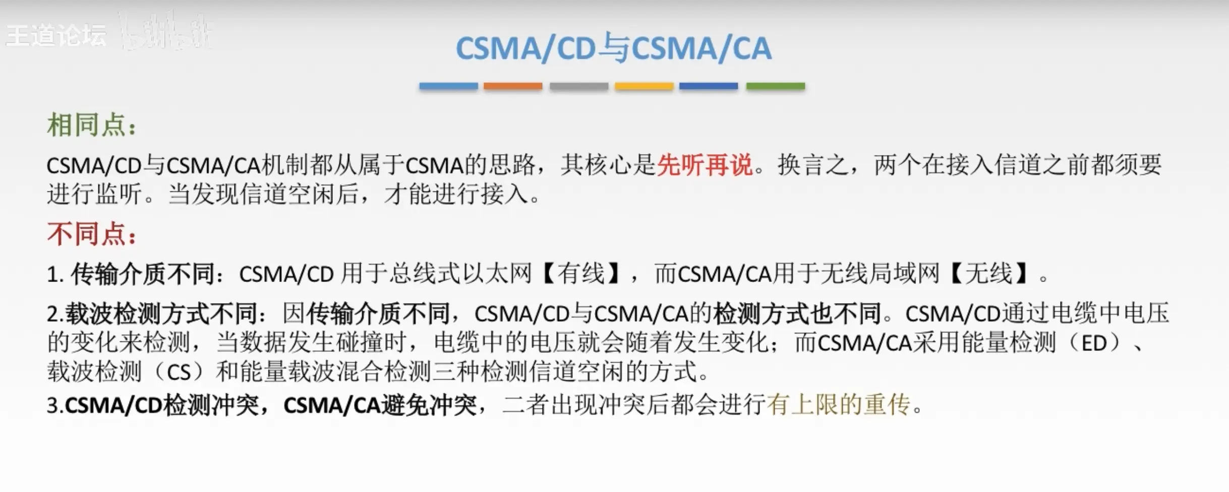 - 介质访问控制:采取一定的措施,是两对结点之间的通信不会发生互相干扰的情况