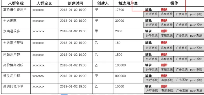 在圈定好人群以后,可以对这部分人群提供与业务系统的外呼系统,客服系统,广告系统,Push系统的交互,达到真正的精细化运营的目的。