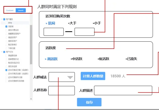 此功能允许用户自定义的圈定一部分人员,圈定的规则就是对于标签的条件约束。