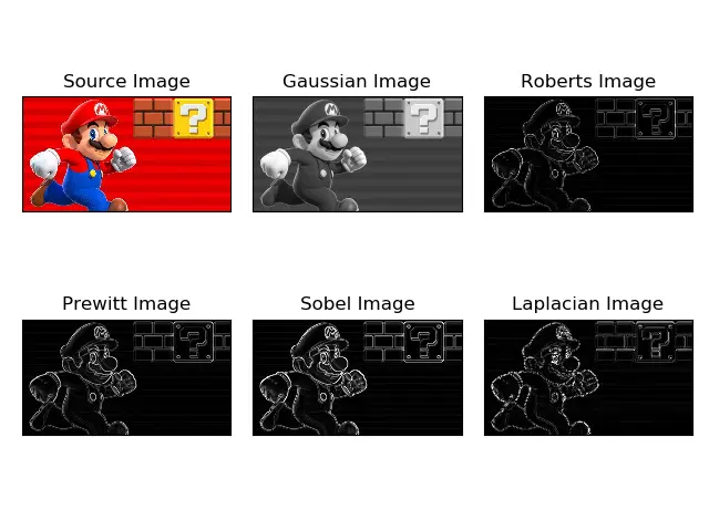 titles = ['Source Image', 'Gaussian Image', 'Roberts Image',