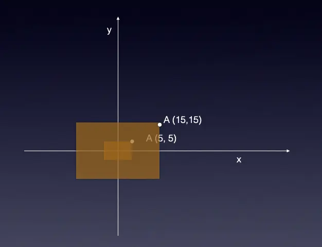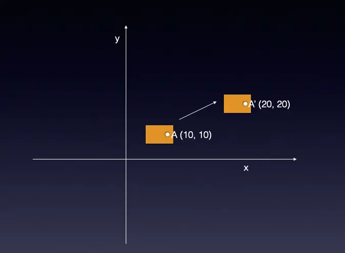 由于我们的手机是一个二维平面,A(10, 10)平移到A‘(20, 20)只需要分别在x,y轴都加上10就可以了,用数学表达式:
