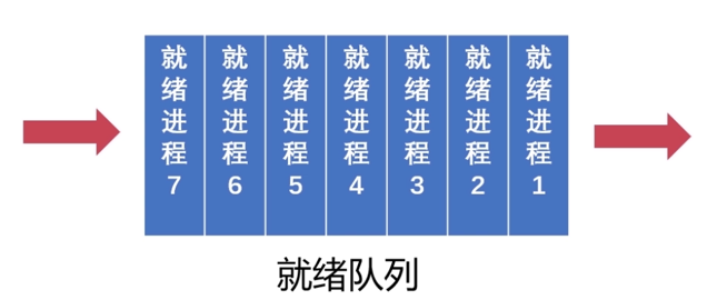 在就绪队列中,按照先来先服务的原则,优先选择队列前面的进程进行调度