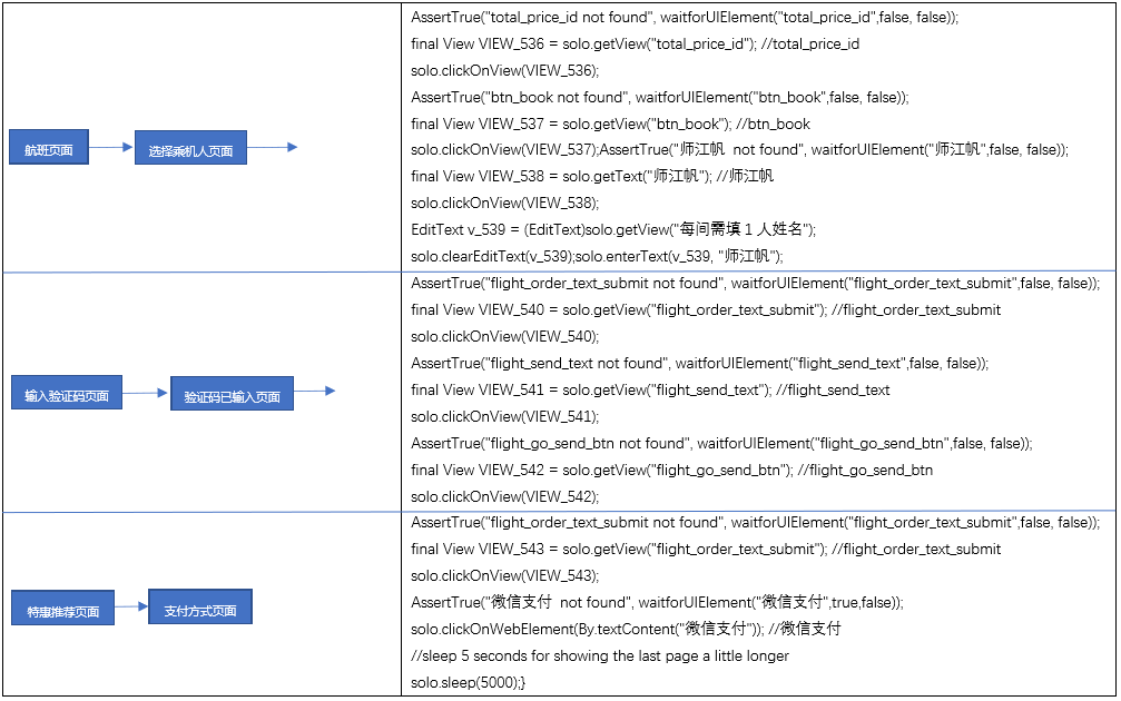 具体来说,龙测提供基准流程测试代码。对于基准流程代码,龙测采用静态分析算法抽取App的业务流程图(如下所示的部分业务图):