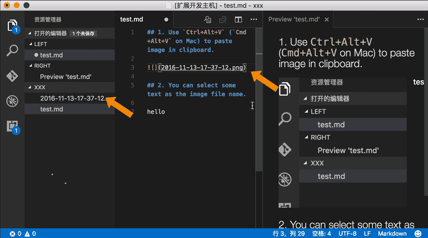 Paste image directly from clipboard to markdown/asciidoc(or other file)! Support Mac/Windows/Linux! And support config destination folder.