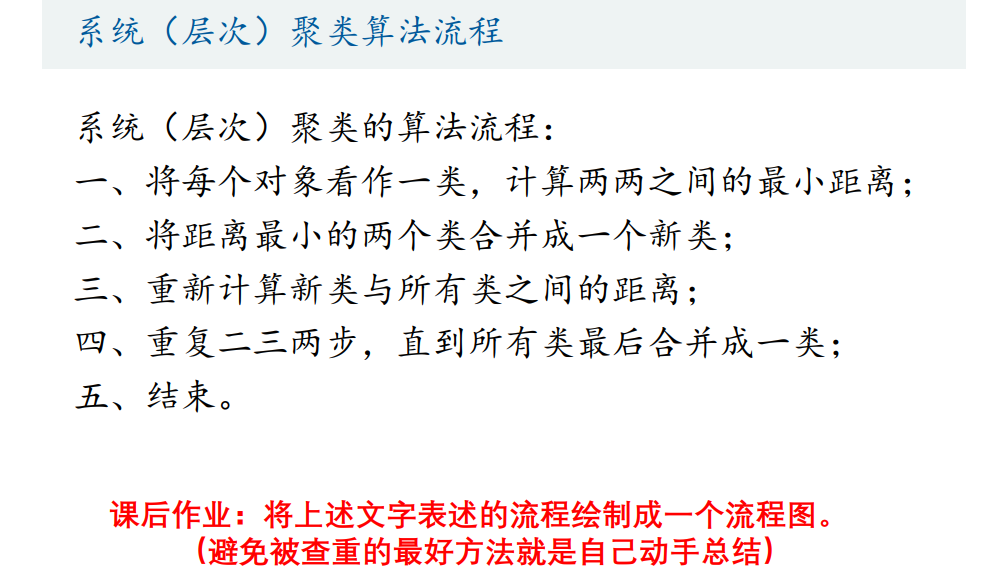 系统聚类和K-均值聚类都是对样品进行聚类,与K-均值聚类相比,系统聚类通常用于数据量较少的情况下,数据太大,系统聚类很慢低效。