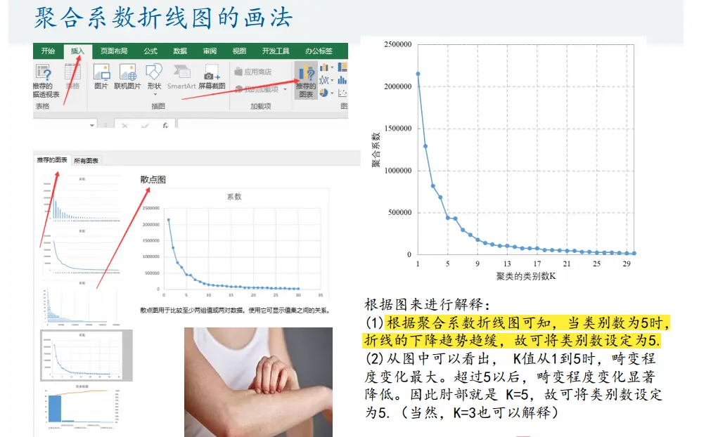 由肘部法则确定聚类个数:
