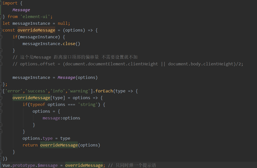 设置Element UI的Message消息提示每次只弹出一个 醉千年2575 2020-06-29 2,493 阅读1分钟 Element Ui的Message提示是点击一次触发一次的。要是一直点,会一直弹出,会导致同一时刻出现多个提示,影响体验。 main.js 加上以下代码即可 用法如下: