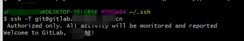 最后使用 ssh -T git@(gitlab.com/github.com)测试