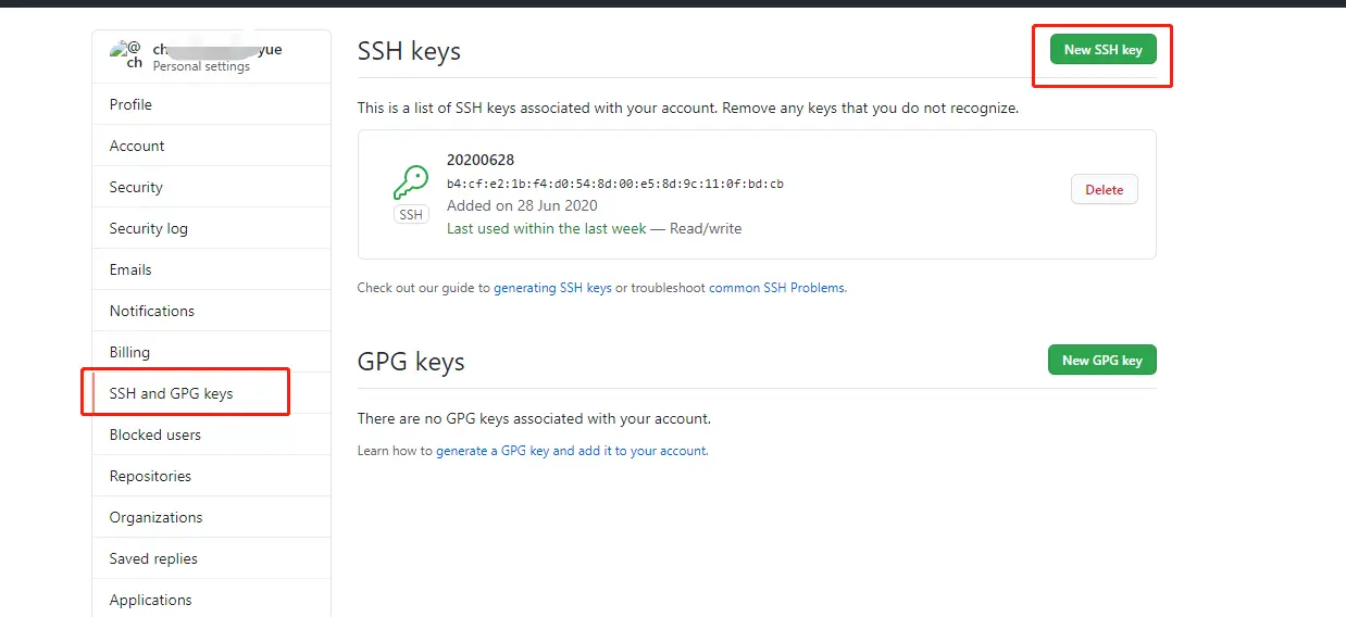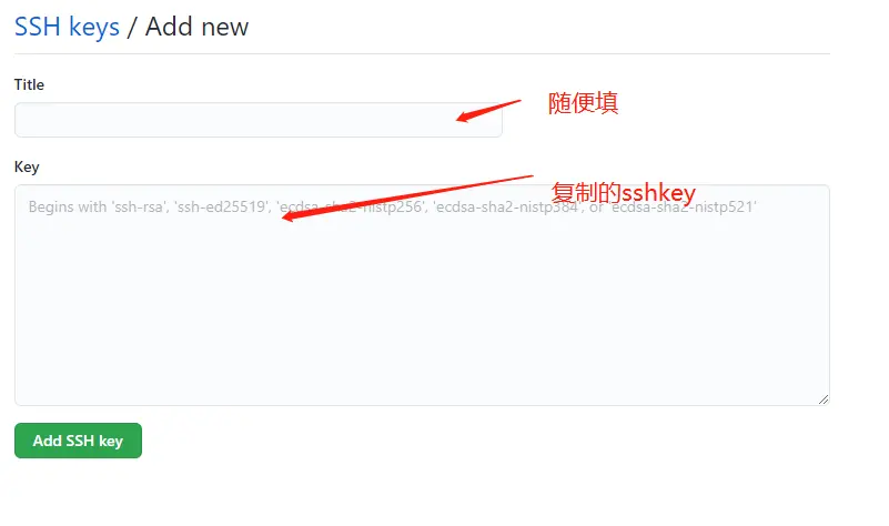 这里以github为例,找到右上角的图标,打开点进里面的Settings,再选中里面的SSH and GPG KEYS,点击右上角的New SSH key,然后Title里面随便填,再把刚才id_rsa.pub里面的内容复制到Title下面的Key内容框里面,最后点击Add SSH key,这样就完成了SSH Key的加密。具体步骤也可看下面: