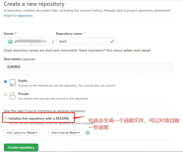 由于新建的远程仓库是空的,所以要加上-u这个参数。然后进去GitHub test2这个仓库刷新下就会有已经上传的文件夹了。如果新建远程仓库不是空的,例如你勾选了 Initialize this repository with a README。这时你要先输入:
