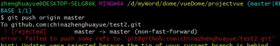 在输入git push origin master之后,如果报这个错误: To github.com:chinazhenghuayue/test2.git ! [rejected] master -> master (non-fast-forward) error: failed to push some refs to 'git@github.com:chinazhenghuayue/test2.git'