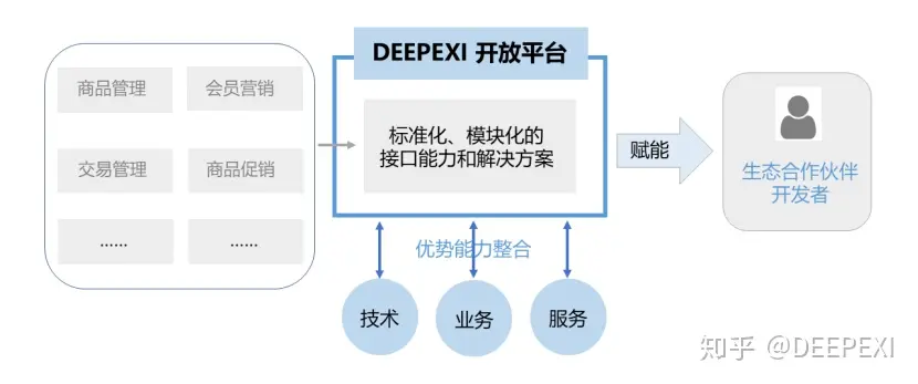 DEEPEXI 开放平台的核心价值,在于全栈技术的驱动、开放生态的循环、互利共赢的理念。这种“开放”不仅对外,也是对内的。
