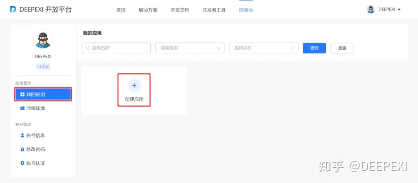 在「控制台」页面,点击左侧菜单「我的应用」,进入「创建应用」。