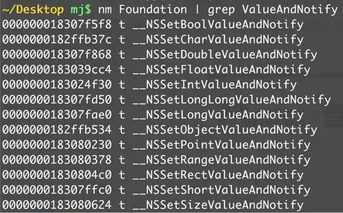 我们可以找到Foundation框架文件,通过命令行查询关键字找到相关函数