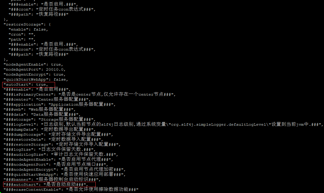 编辑node_127.0.0.1.json文件,在里面找到autoStart参数,设置为“true”,保存关闭。如下图: