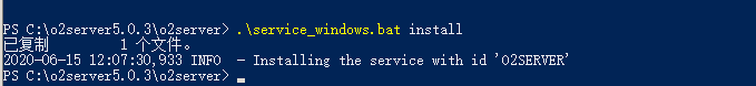install o2server目录下的service_windows.bat文件,往系统服务中写入o2server。