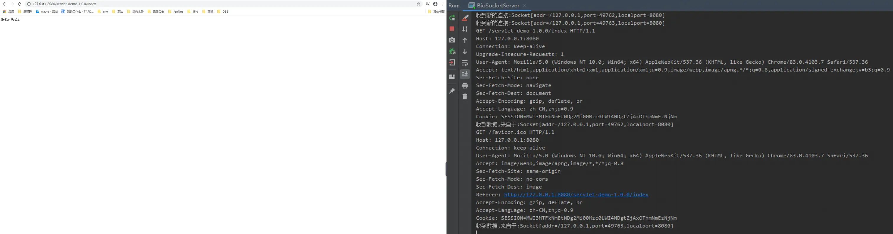 2.打开浏览器输入http://127.0.0.1:8080/servlet-demo-1.0.0/index 访问服务端