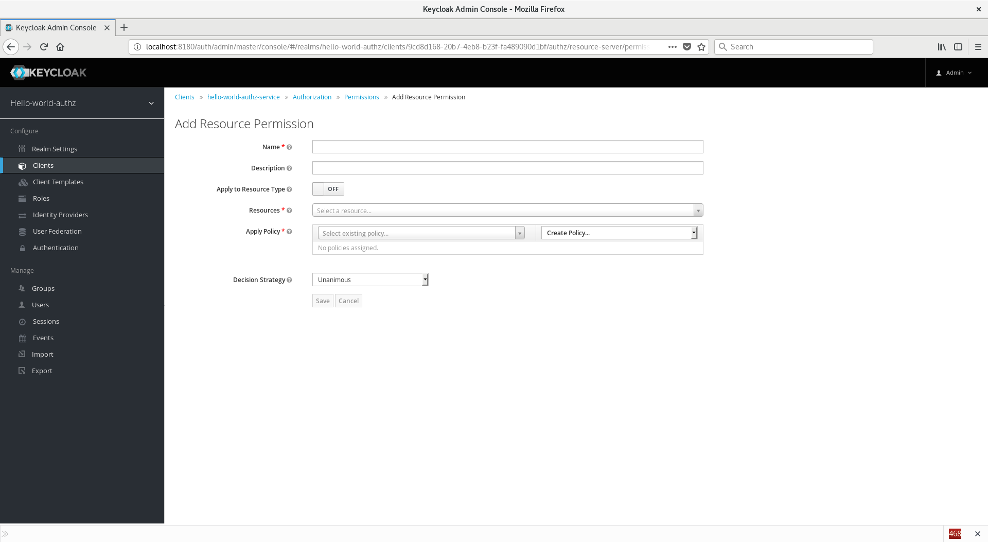 定义好了资源服务器和其上的资源,下一步就是定义权限和策略。