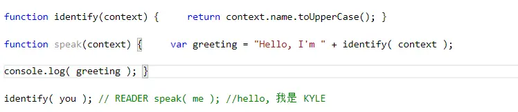 这段代码可以在不同的上下文对象(me 和 you)中重复使用函数 identify() 和 speak(), 不用针对每个对象编写不同版本的函数。