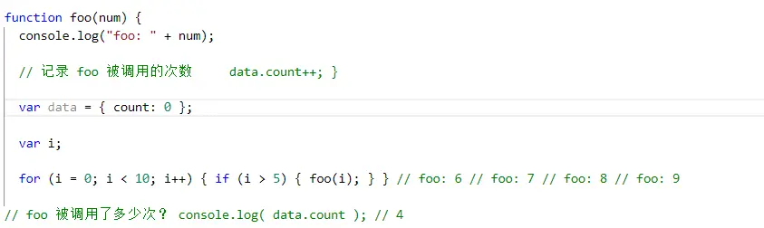// foo 被调用了多少次?console.log( data.count ); // 4