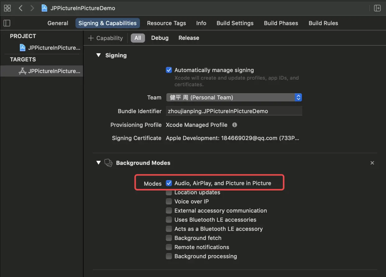 使用Xcode12打开工程,首先得开启后台模式: