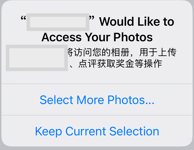 增加了选择照片选项,App只能获取用户选择的Photo,更好的保护隐私