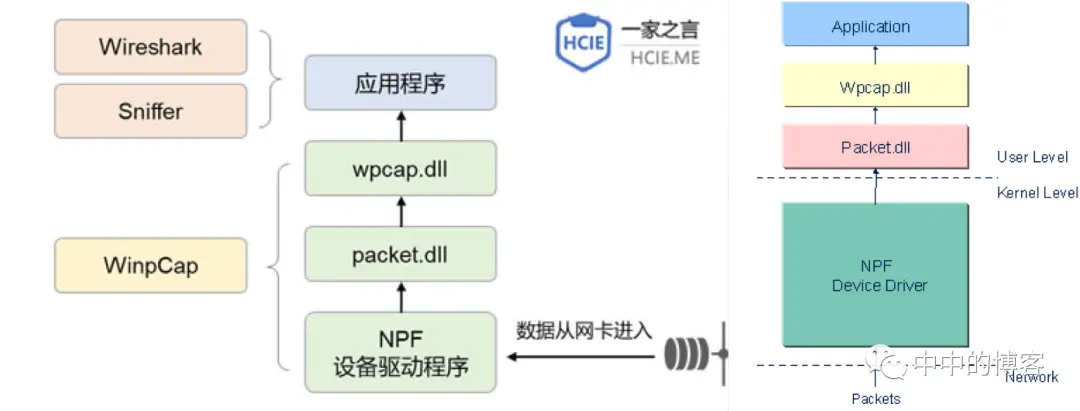 npf利用网卡的混杂模式采集所有经过网卡的数据,wpcap提供pcap在Windows上的实现