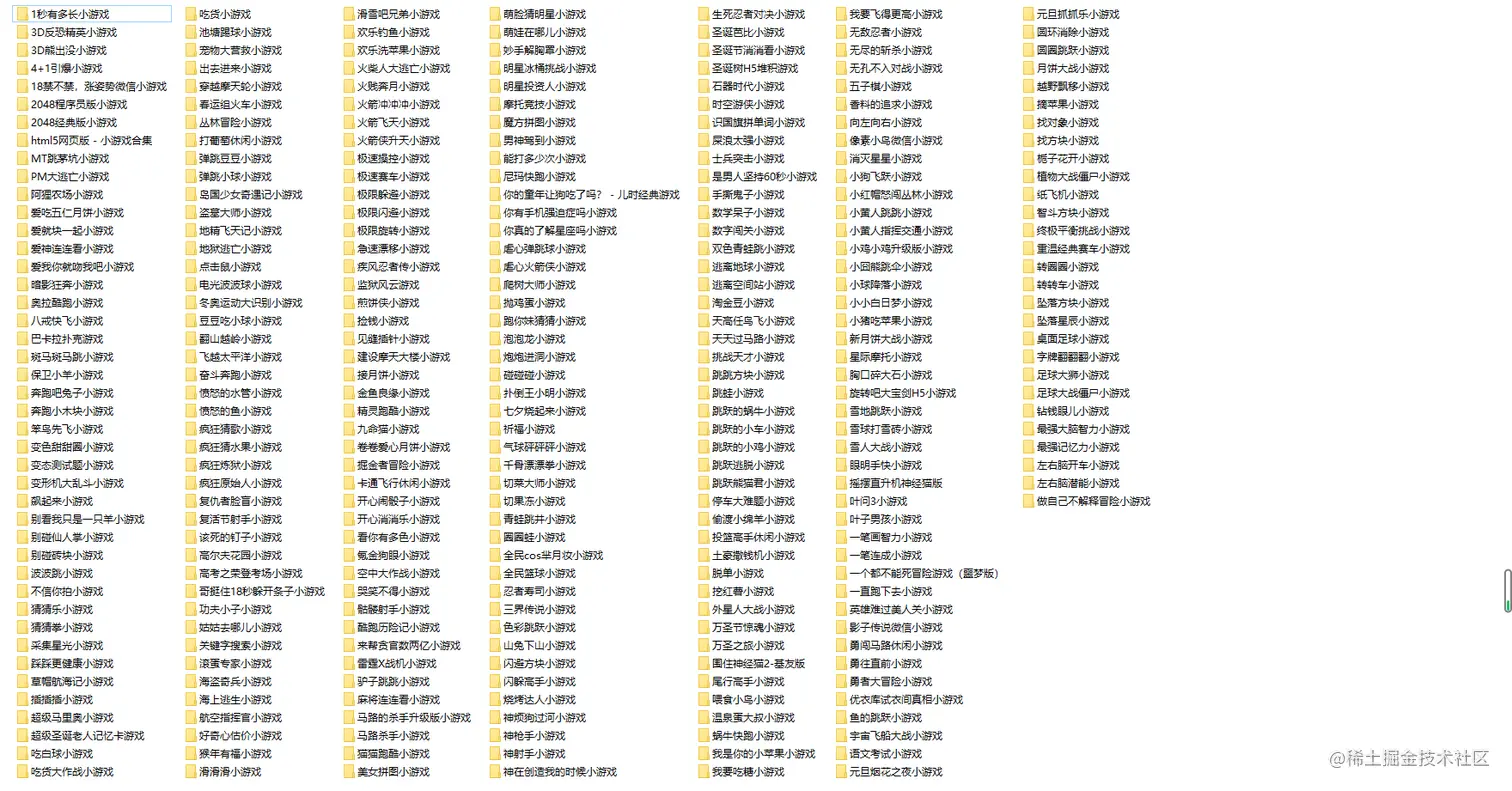 以上小游戏已亲测可玩,注意:初次加载游戏可能会有点慢(服务器买了个便宜的,作者缺钱,哈哈😛),请耐心等待或再次刷新页面。作者辛苦收集整理良久,如果真心觉得不错,就请点个👍和❤️收藏,感谢支持,后续会将更多小游戏亲测完成后,再分享第一波。😘(文末有全套源码截图)
