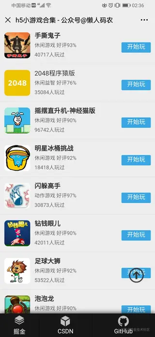 就分享到这吧,如果发现小游戏BUG,或好玩的,都可以告诉我,反馈BUG我会及时修复,也期待与大家一起多多交流学习。后续会分享更多精选手机模板、网页模板、H5小游戏、网页炫酷特效等源码。关注作者公众号,敬请期待。
