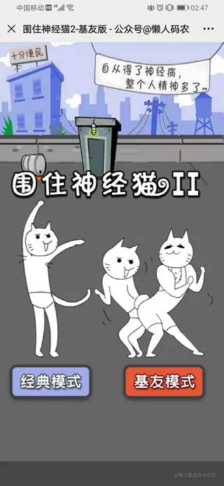 介绍H5小游戏之前先来线上体验一把当年刷爆朋友圈的经典游戏(工作学习之余,来轻松一刻),访问地址:game.54web3.cc/