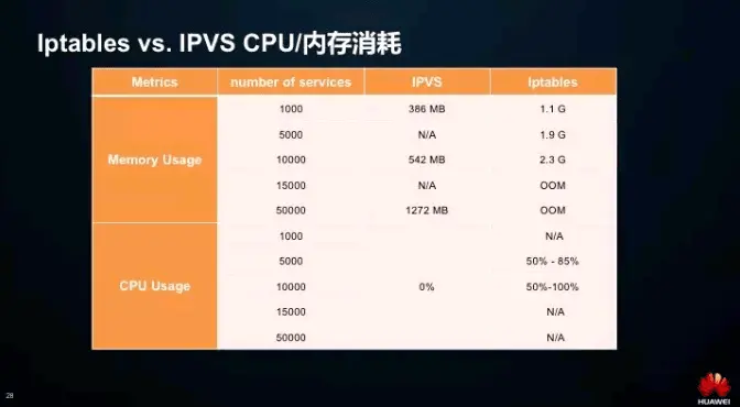 - 最后是可用性。服务扩容/缩容时,Iptables 规则的刷新会导致连接断开,服务不可用。