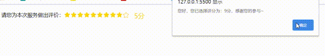 alert(`您好,您已选择评分为:${score}分,感谢您的参与~`);